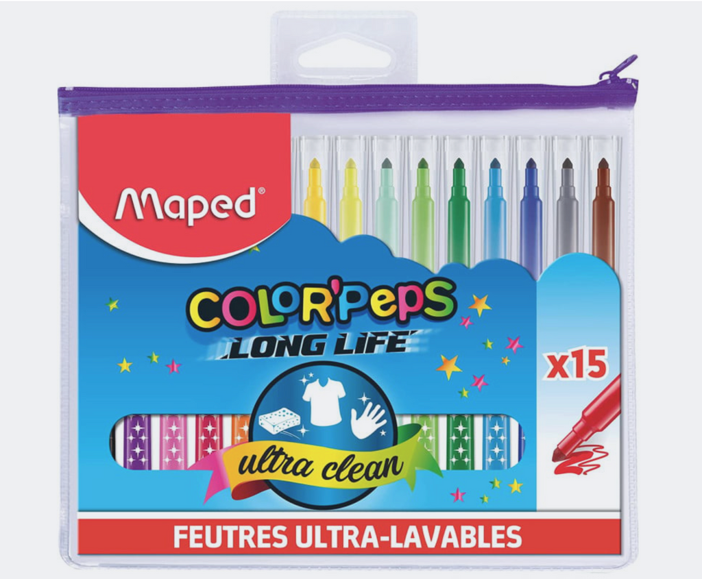 15 feutres de coloriage - Pointe moyenne - Ultra lavable - Color'Peps Long life - Maped